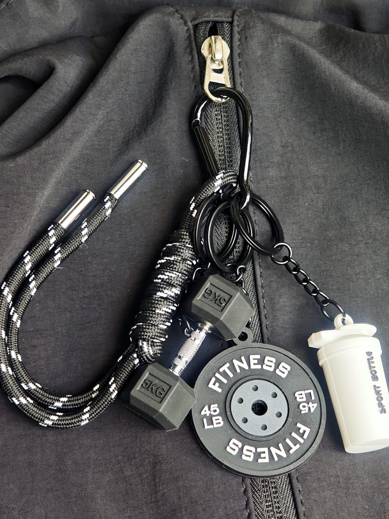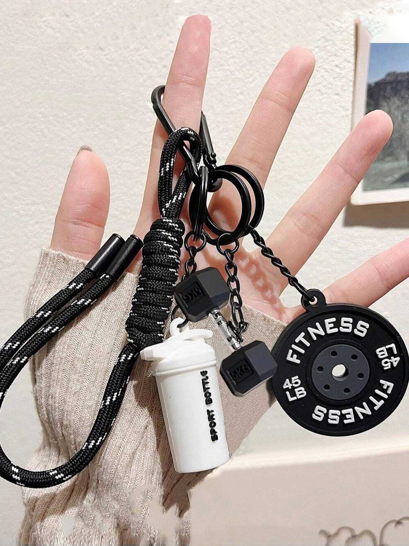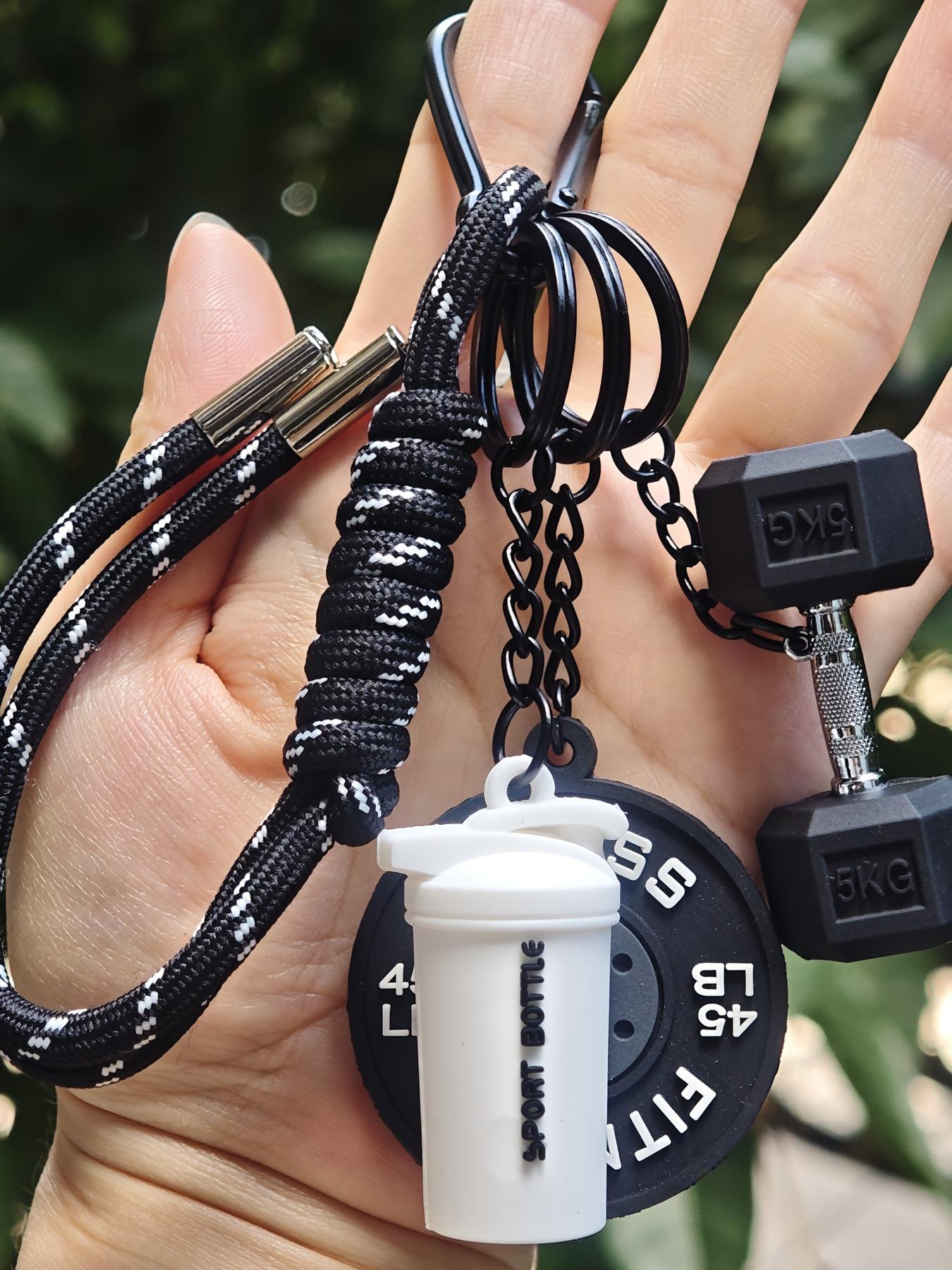 【Unique Sports Charm】: This keychain features a fitness dumbbell pendant, making it a distinctive fashion statement for gym enthusiasts.